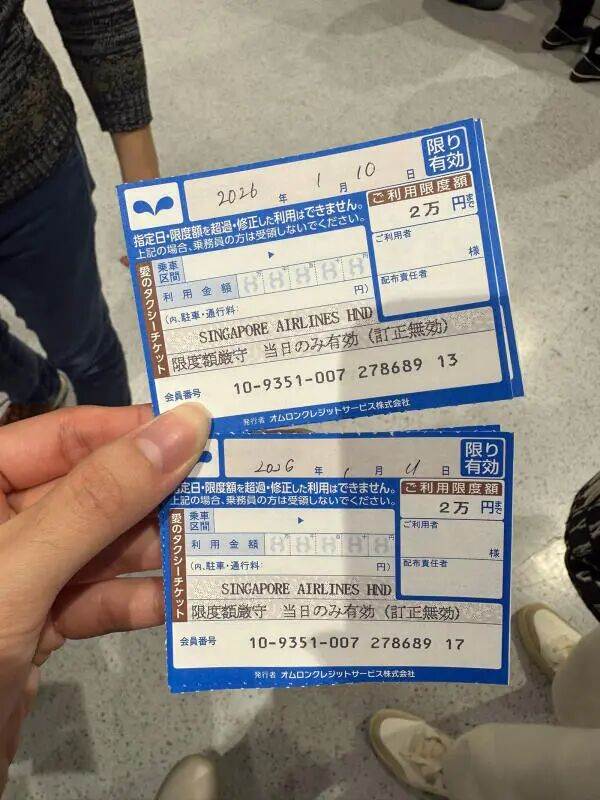 乘客获得2万日元的德士车券用来往返酒店和机场。往返酒店和机场。(受访者提供)