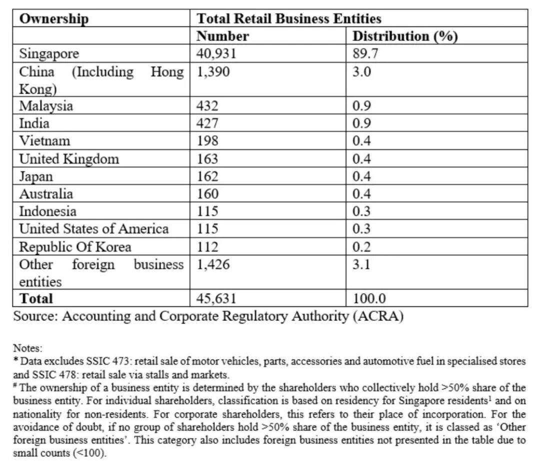 1月12日,新加坡国会给出了一组相当冷静的答案。副总理兼贸工部长颜金勇在国会书面回复中,披露了新加坡零售业一个关键数据:新加坡共有45361家注册零售商业实体。其中89.7%由新加坡人拥有,3%由中国业主拥有(约 1390 家),其余来自马来西亚、印度、欧美、日本等国家和地区。这意味着,即便把所有中国背景的零售实体加在一起也只占整体不到十二分之一,新加坡零售业仍然高度本地化。