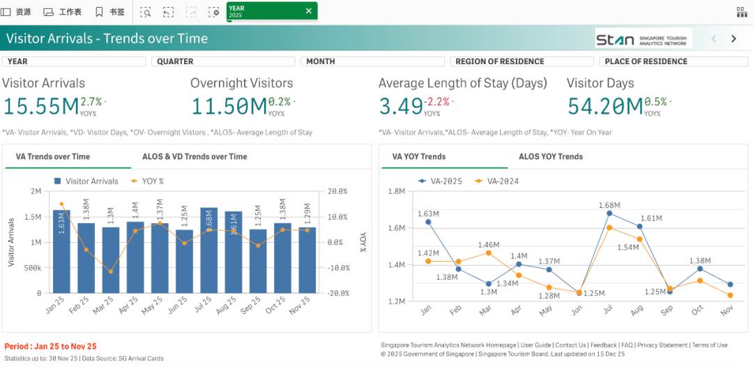 根据新加坡旅游局 (STB) 的数据看,截止今年11月,新加坡游客人数仍在增长,但人均停留时间却在缩短。越来越多人只住一晚、走一圈、吃一顿就离开。让新加坡更像一个旅游中转站,而非让人真正停留体验的目的地。