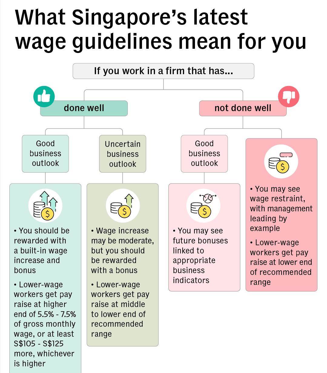 延续去年的方针,NWC建议对月薪不超过2700新元的低薪员工加薪5.5%至7.5%,或增加105至125新元,以较高者为准。