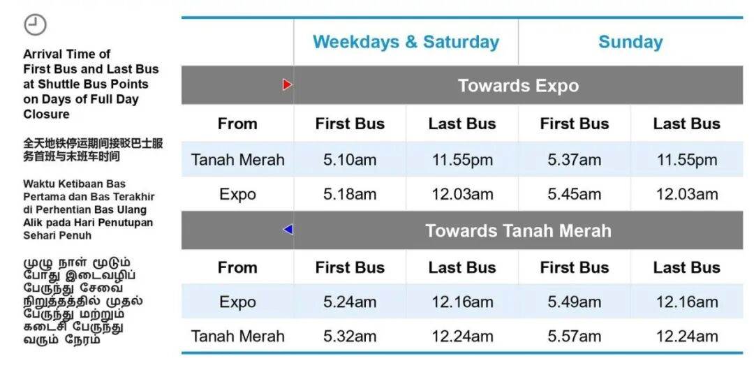文告也说,为了尽量不影响乘客出行,SMRT将在停运期间,在丹那美拉站和博览站之间提供S8号接驳巴士服务,巴士每五到八分钟就有一趟,收费跟地铁一样,乘客可以用车资卡或银行卡支付。