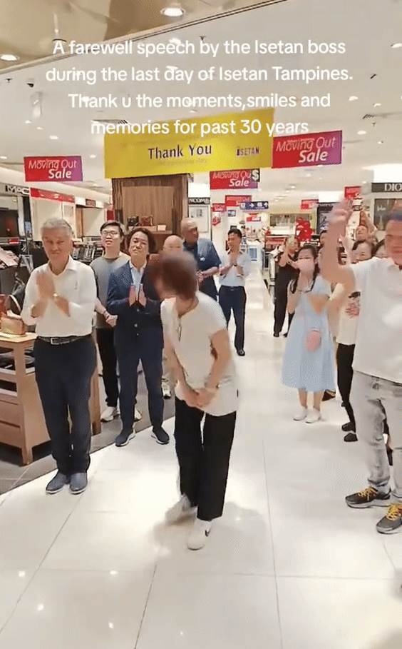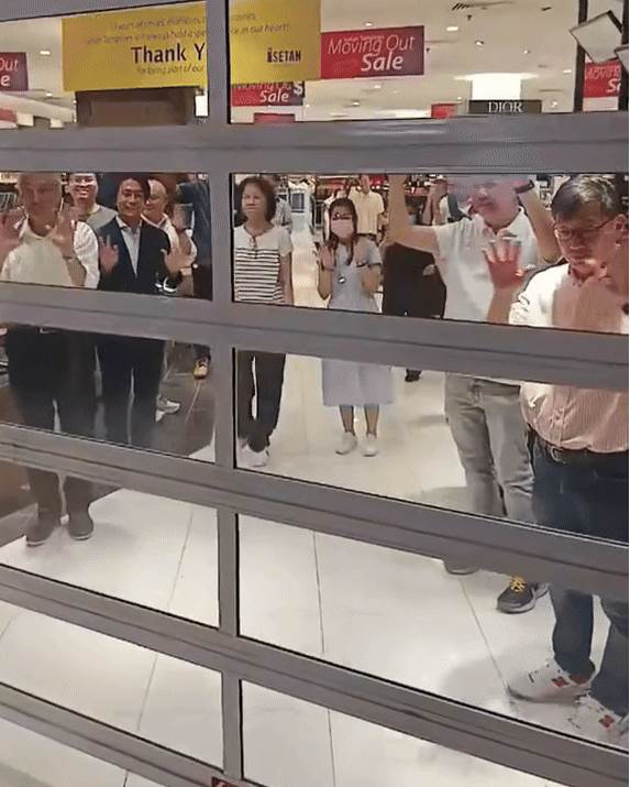 说完,闸门缓缓降下。门内的员工和门外的顾客隔着下降的金属栅栏,相互挥手道别。这段视频成为伊势丹淡滨尼店结束30年服务的缩影。