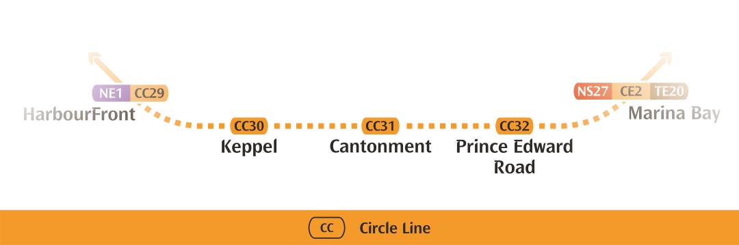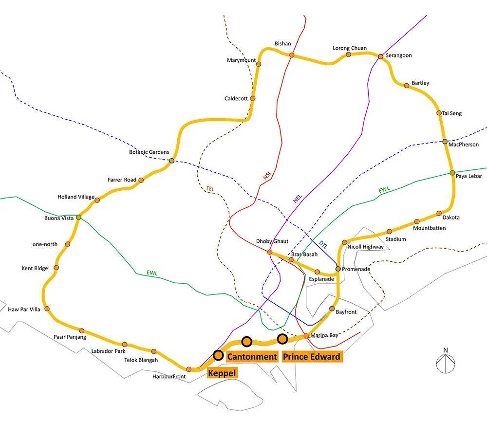 在接下的一两个月内,环线第六阶段(CCL6)将正式投入使用,在港湾站和滨海湾站之间补上最后一段,新增Keppel、Cantonment和Prince Edward Road三个站点。