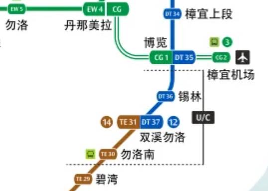 按照规划,到2030年前后,棕线会继续从Sungei Bedok往东延伸,一直到樟宜机场第五航站楼(Changi T5)。