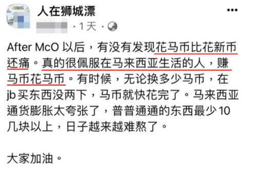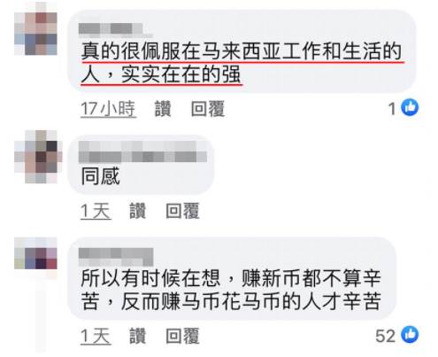 该网友表示真的太佩服那些能够在马来西亚生活,还能够赚马币、花马币的人了。他写道: