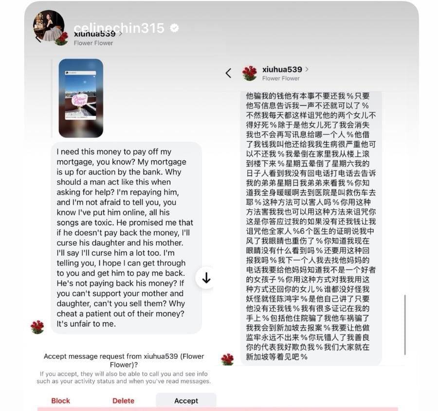 他透露,该名女子从今年2月17日开始,频繁地通过社媒私信他,内容多为指责和质问,但当时他只觉莫名其妙,加上经常会收到陌生私信,所以不予理会。
